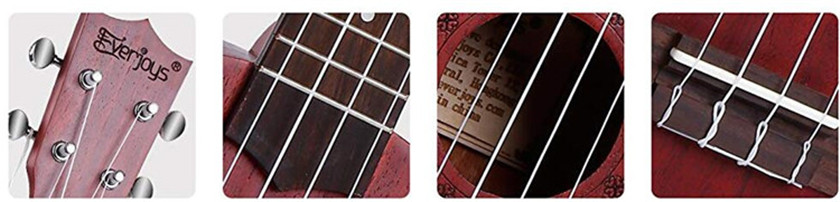 Öğrenmesi kolay: Daha fazla zaman harcayarak ve daha az zaman ayarlayarak harcayın! Ukulele'nizi daima uyum içinde tutmak için doğru ve pürüzsüz, krom kaplı gitar tarzı tunerler. Boyunda 5., 7., 10. Perdede izler bulunan doğru perdeli 12 nikel gümüş perdeli , klavyenin üstünde