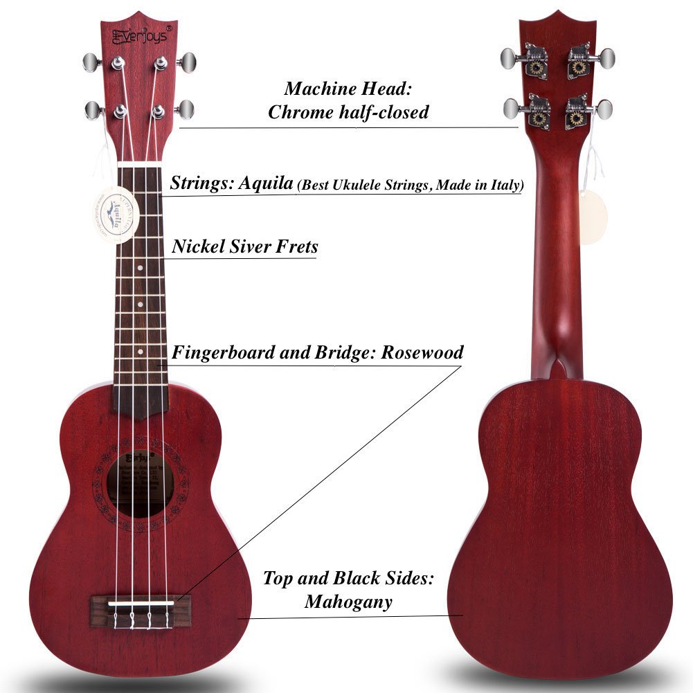 - Malzeme: maun gövde ve boyun, gülağacı klavye ve köprü, dört adet Aquila Strings Takılı (En İyi Ukulele Strings, İtalya'da Yapılan)